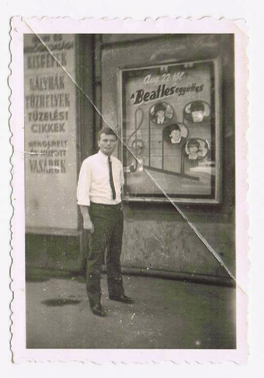 Does anyone know what country this is from? Is the young man standing next to a poster for "A Hard Day's Night" in his country, or is it some other Beatles film? It appears to be "A Hard Day's Night" to me from the little photos of the Beatles on the poster. I think it is an awesome poster.